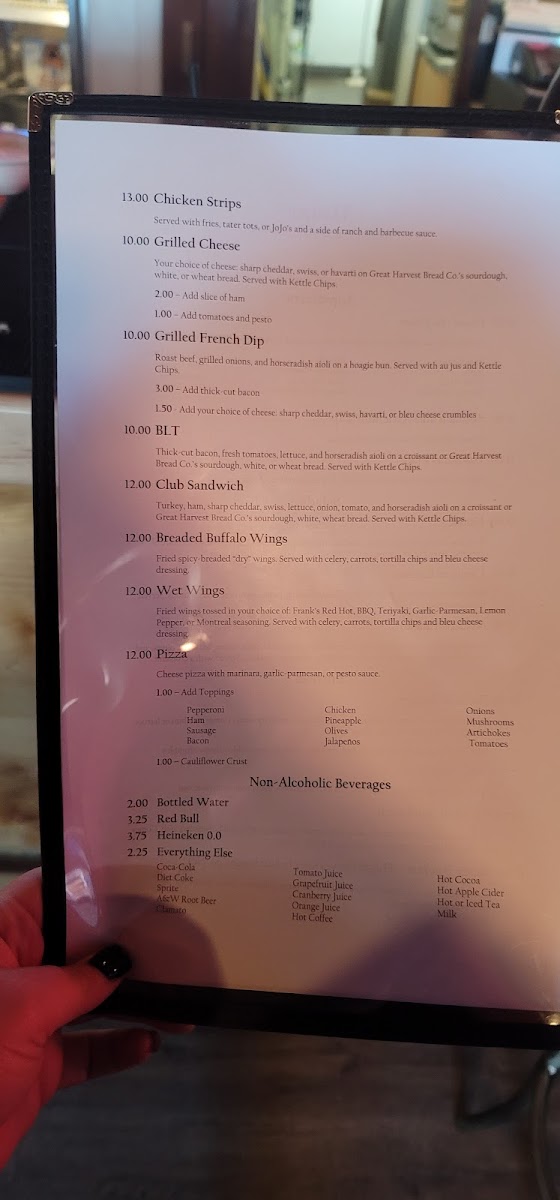 The menu suits the welcoming and lively atmosphere of the tavern. It pairs well with the casual vibe, making it easy to enjoy everything from shareable appetizers like Spinach Dip to main dishes that feel both filling and friendly. Drinks like a refreshing Michelada fit seamlessly alongside the food, complementing the overall experience without overwhelming it.